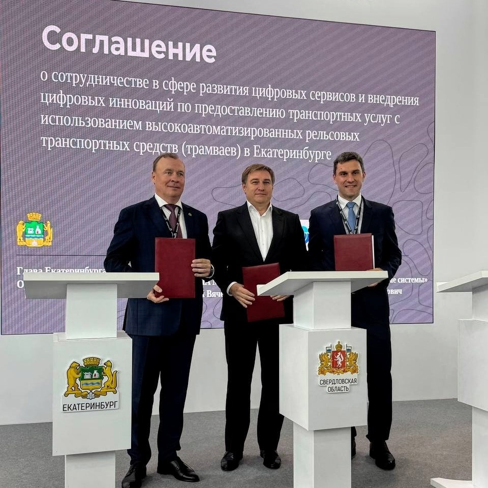 7 июля 2025 года в ходе деловой программы выставки ИННОПРОМ состоялось подписание Соглашения о сотрудничестве в сфере развития цифровых сервисов и внедрения цифровых инноваций по предоставлению транспортных услуг с использованием высокоавтоматизированных рельсовых транспортных средств (беспилотных трамваев) в городе Екатеринбурге.